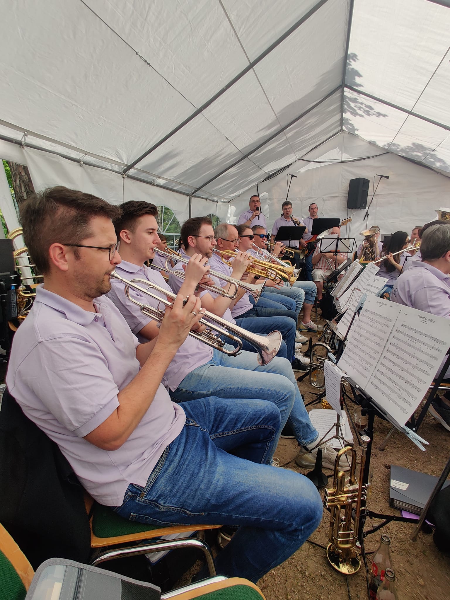 An Christi Himmelfahrt (Vatertag) veranstalten wir jedes Jahr unser "Waldfest" im Braunshardter Tännchen. Nach einem Gottesdienst unter freien Himmel gibt es dann, bei Speisen und Getränken, Unterhaltungsmusik unter der ganzen Spannbreite unseres Repertoires.